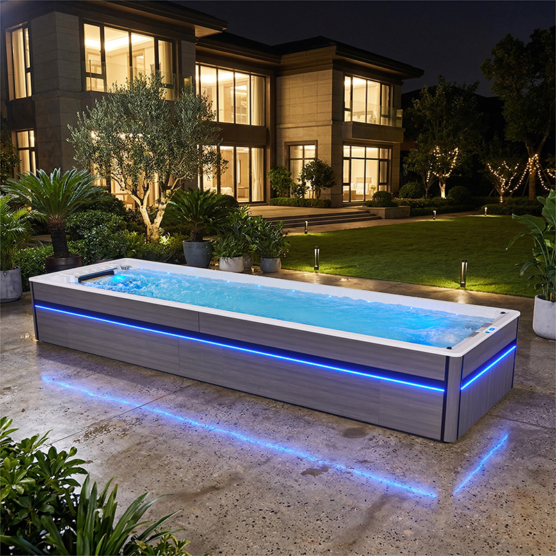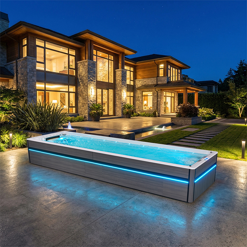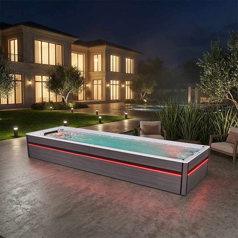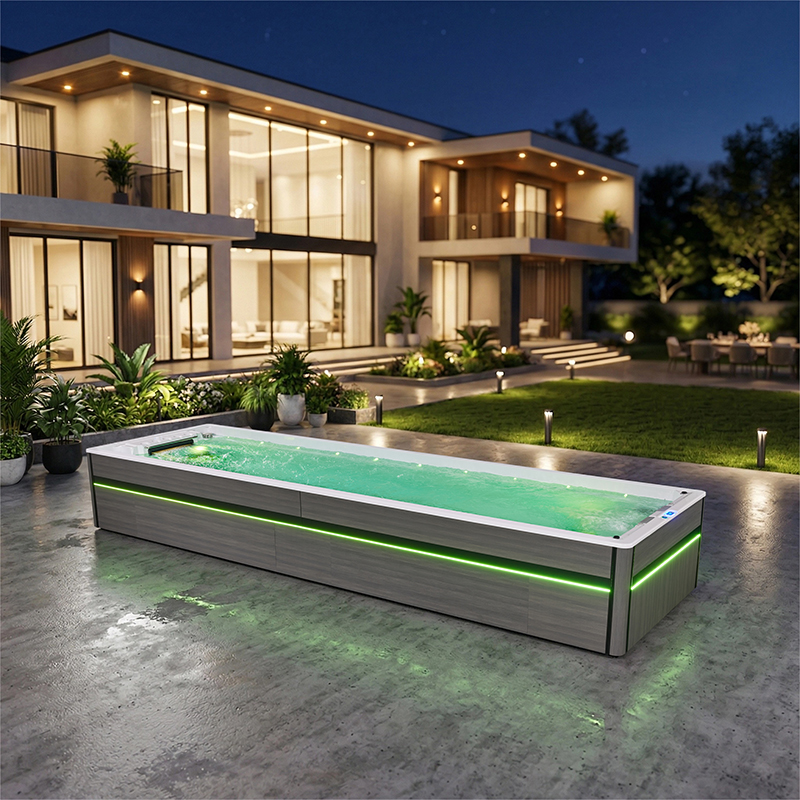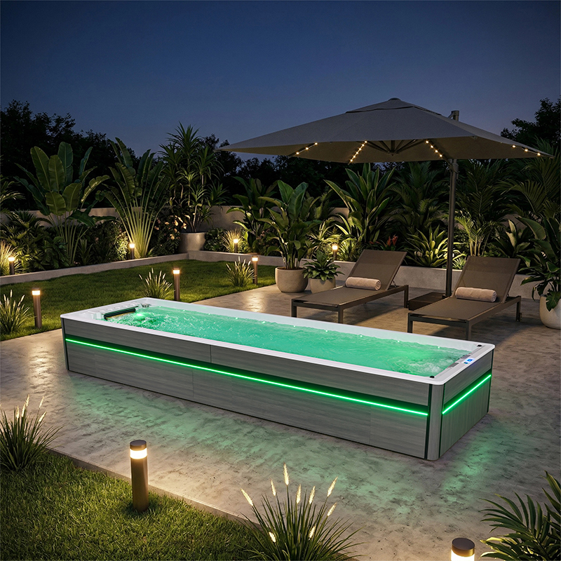 This swim spa is equipped with a high-performance circulation filtration system, combined with advanced water flow regulation technology, to provide a uniform and stable water flow, suitable for swimming training, rehabilitation therapy, and relaxation. Multiple massage jets can accurately relax muscles, relieve fatigue, and bring immersive spa enjoyment.