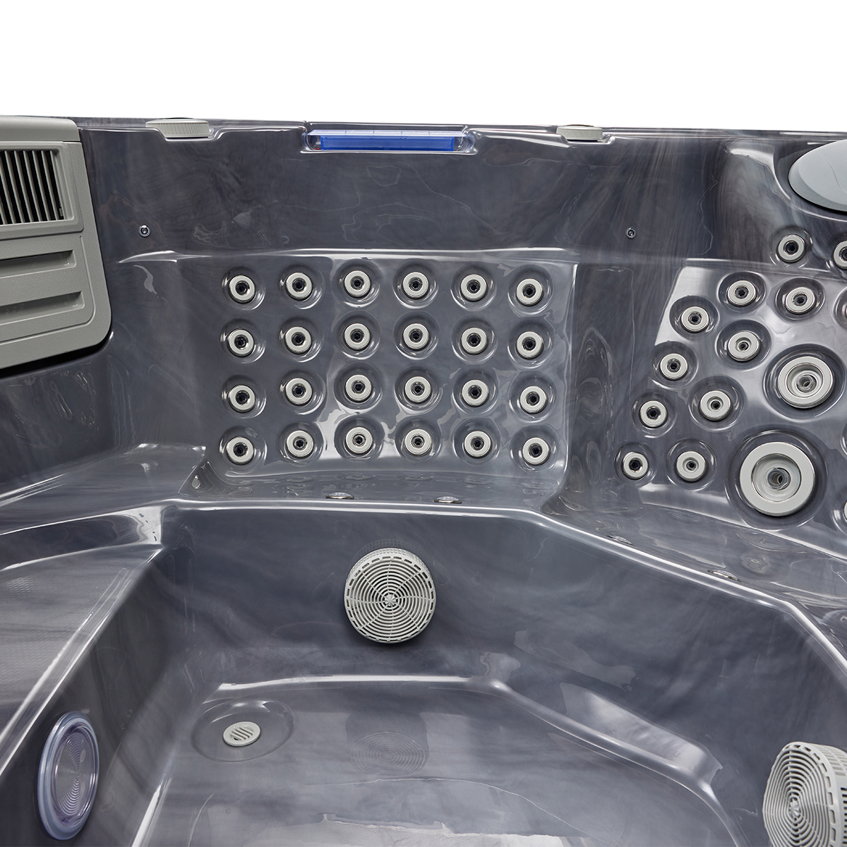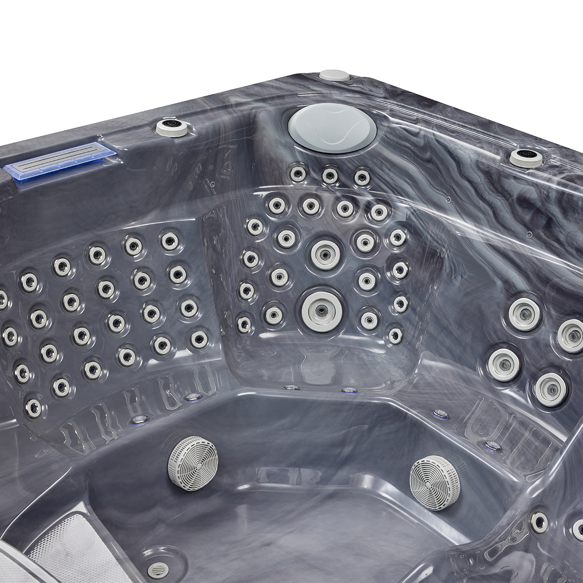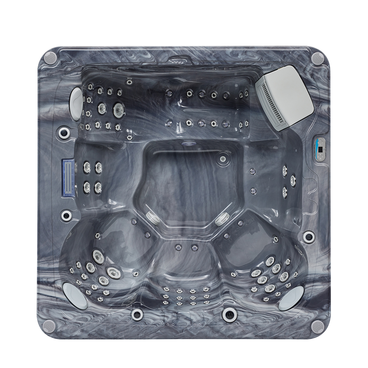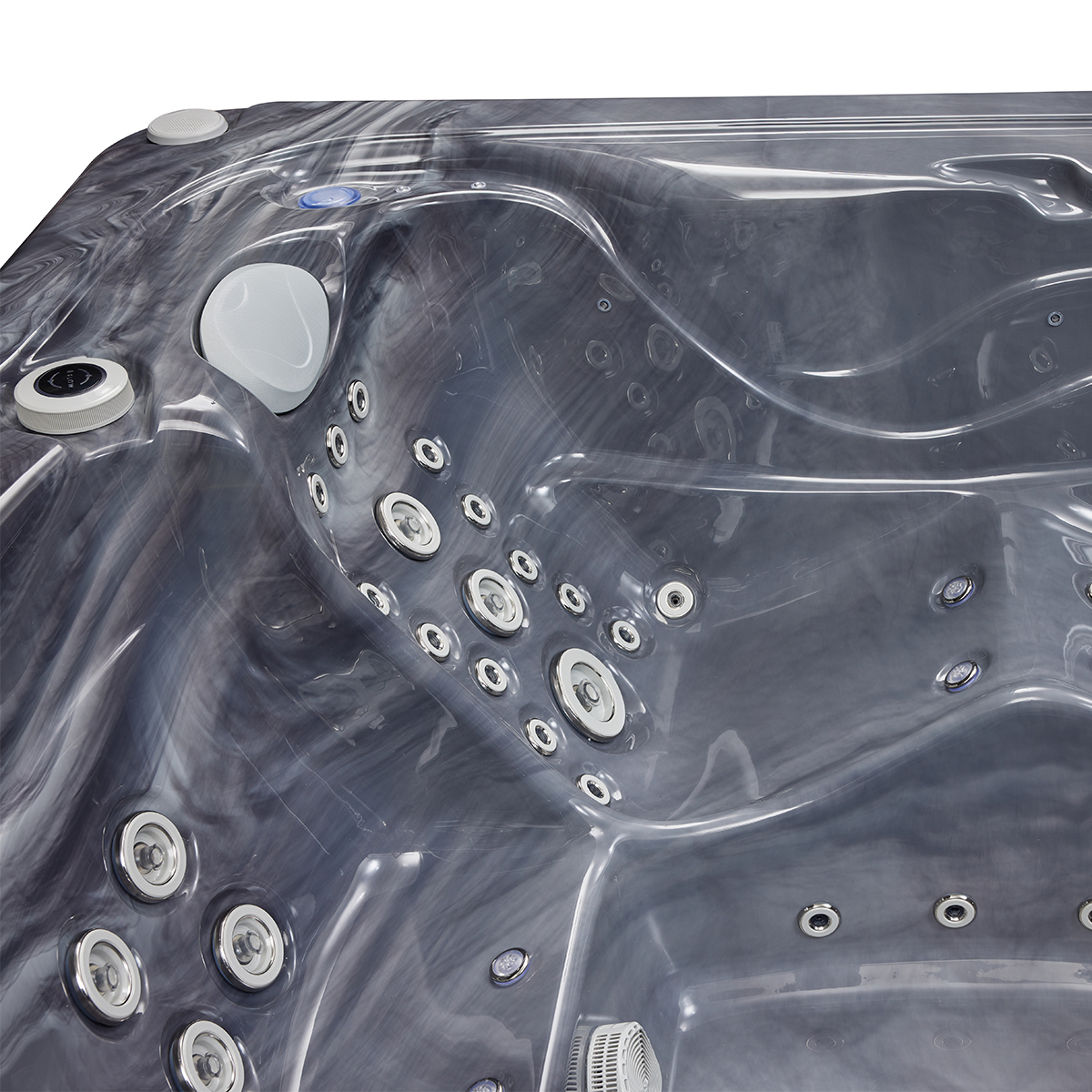 The intuitive control system allows users to easily adjust water temperature, jet intensity, and other settings with just a few simple touches.