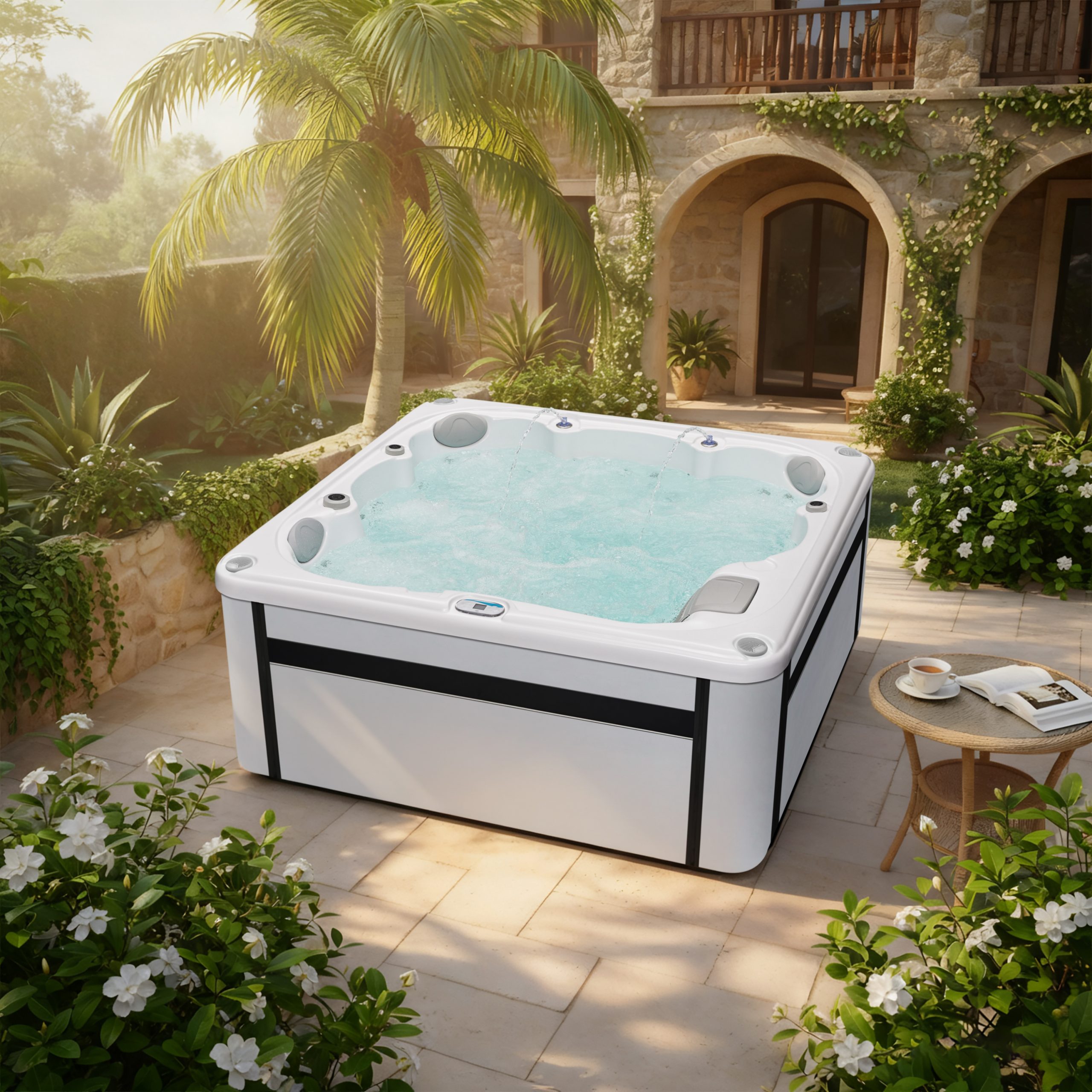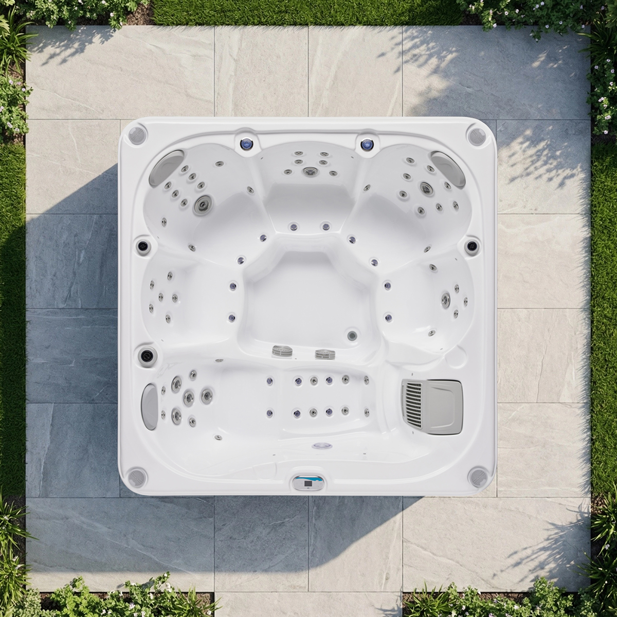 The luxury hot tub combines comfortable massage, smart technology and mood lighting to redefine your spa relaxation time!