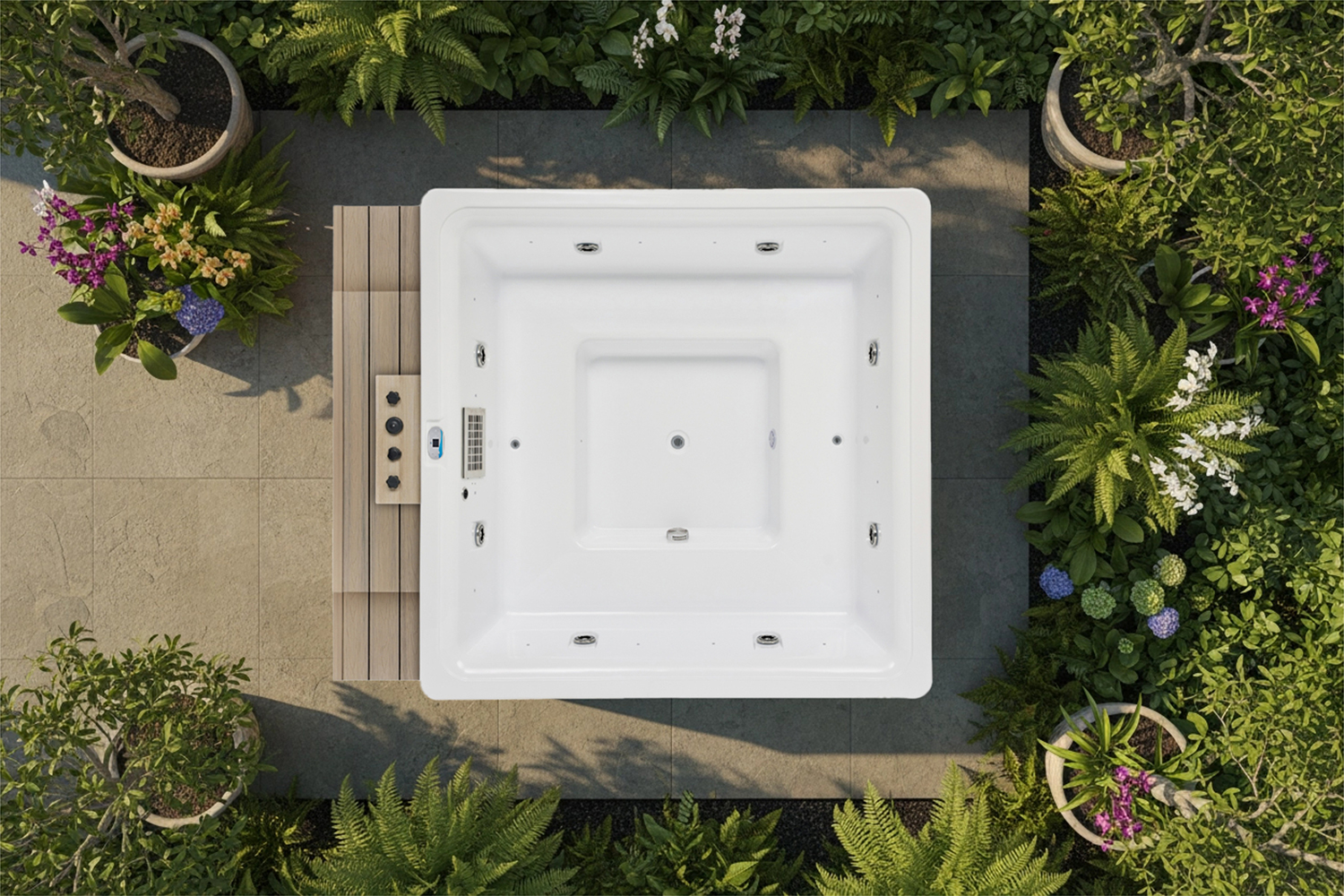 The design of OF-V2802 focuses on durability and heat preservation, and adopts high-efficiency insulation materials to ensure long-term heat retention. Even in cold weather, you can enjoy lasting warmth and comfort while saving energy and environmental protection. This patio hot tub can accommodate 5 people, perfect for family or friends gathering. In addition, it also provides a variety of optional accessories, such as a stylish cover, Balboa system, and 2-step stairs, making it more convenient and safe to use.