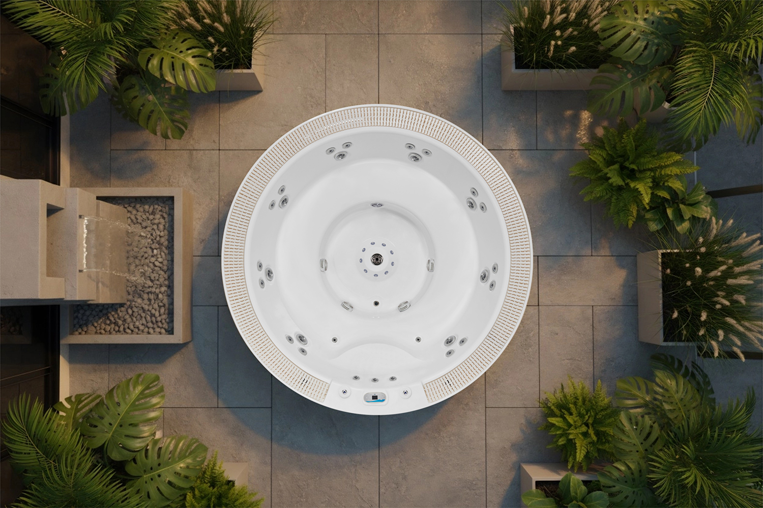 The design of OF-V3004 focuses on durability and heat preservation, and adopts high-efficiency insulation materials to ensure long-term heat retention. Even in cold weather, you can enjoy lasting warmth and comfort while saving energy and environmental protection. This patio hot tub can accommodate 5 people, perfect for family or friends gathering. In addition, it also provides a variety of optional accessories, such as a stylish cover, Balboa system, and 2-step stairs, making it more convenient and safe to use.