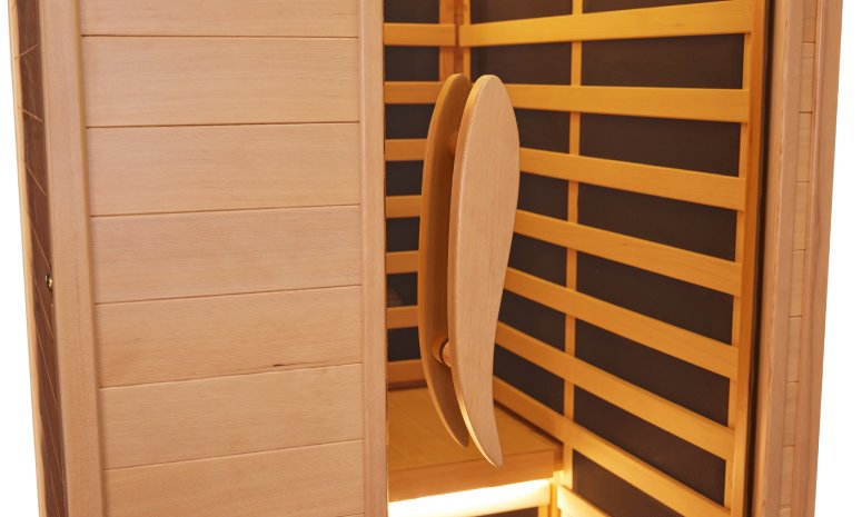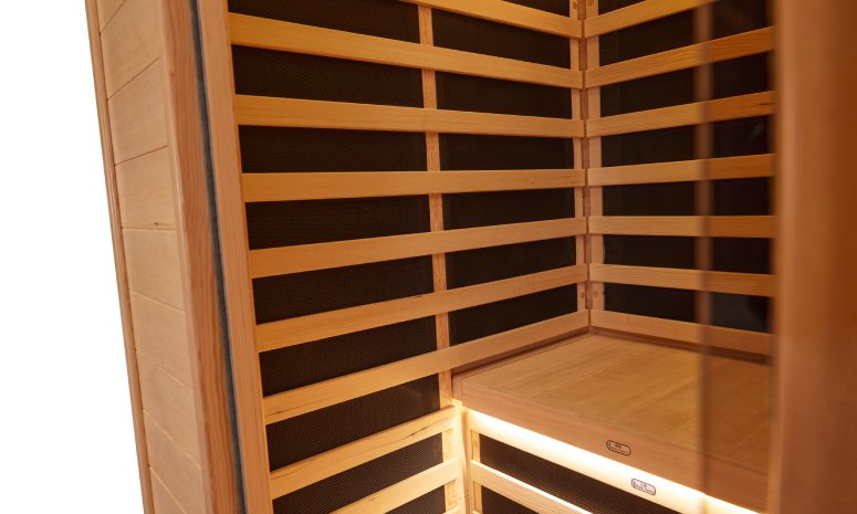 The sauna utilizes advanced infrared heating technology, which deeply penetrates the skin for a more effective and soothing experience.