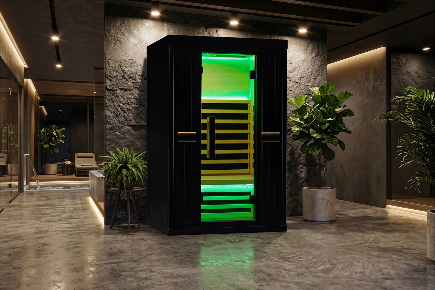 This sauna room is carefully made of high-quality wood, which is natural and environmentally friendly, high temperature resistant and exudes a light wood fragrance, adding a sense of tranquility and relaxation to your sauna experience. Equipped with a smart control panel, you can easily adjust the temperature and time, and accurately control the sauna experience. In addition, the built-in Bluetooth audio system allows you to play your favorite music while enjoying the sauna, creating a more pleasant and relaxing atmosphere.