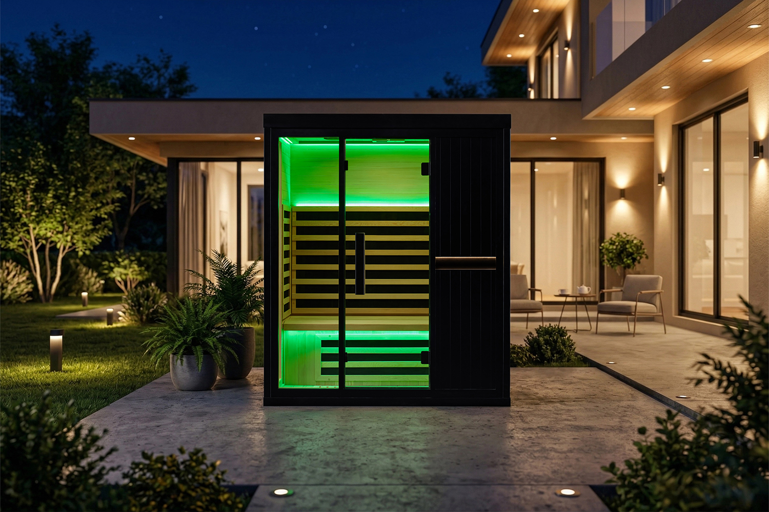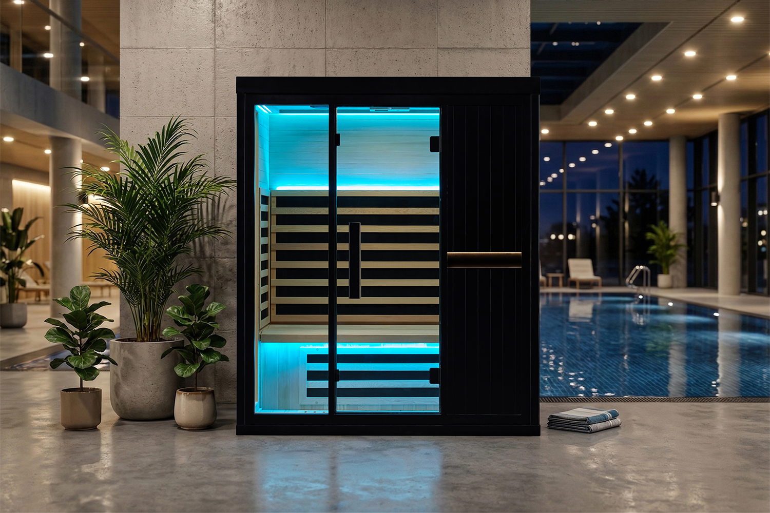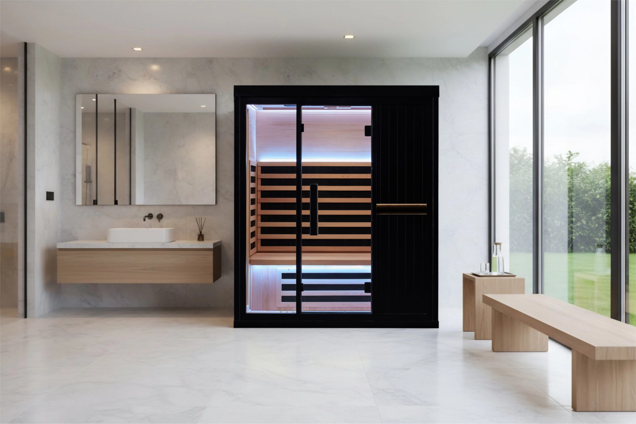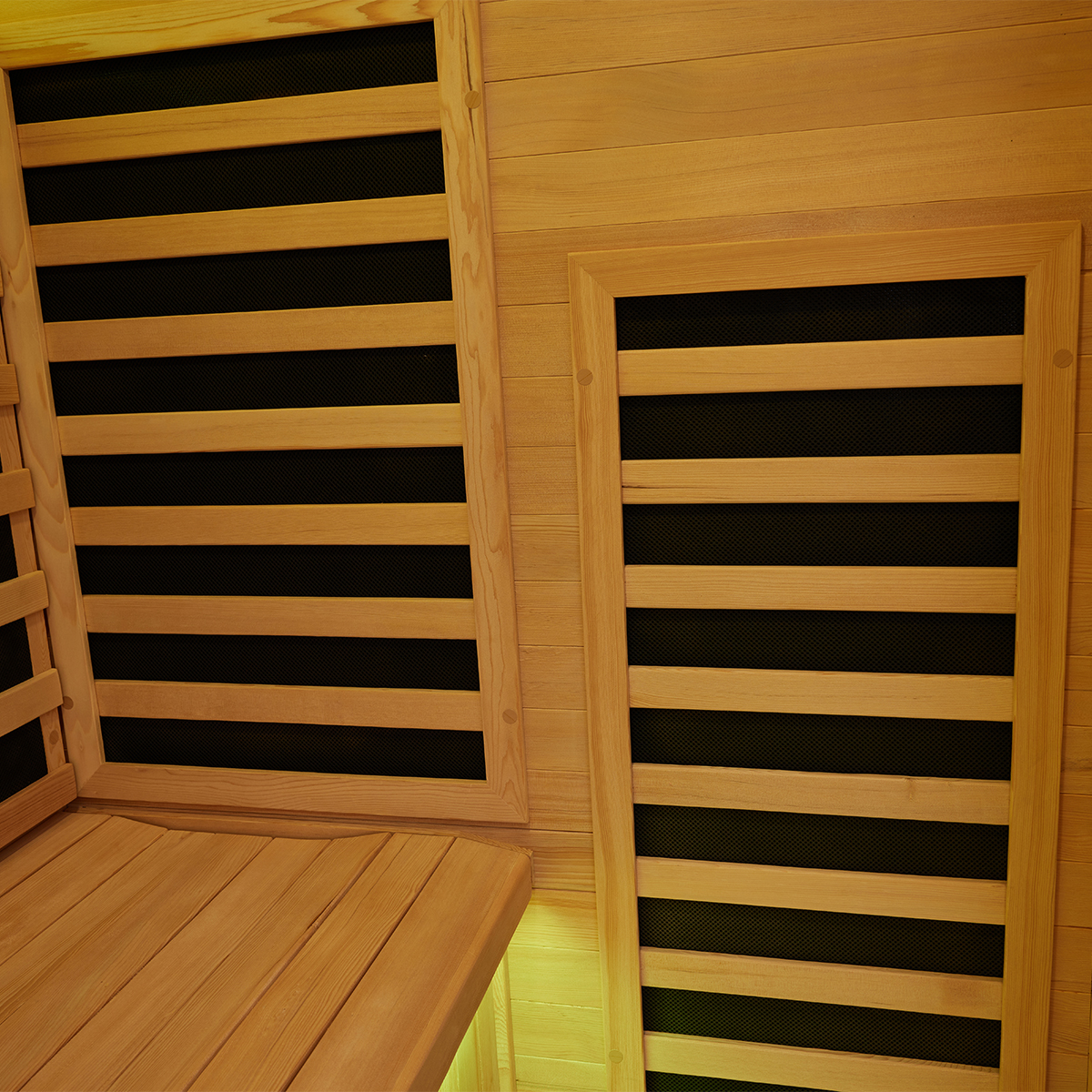This sauna room is carefully made of high-quality wood, which is natural and environmentally friendly, high temperature resistant and exudes a light wood fragrance, adding a sense of tranquility and relaxation to your sauna experience. Equipped with a smart control panel, you can easily adjust the temperature and time, and accurately control the sauna experience. In addition, the built-in Bluetooth audio system allows you to play your favorite music while enjoying the sauna, creating a more pleasant and relaxing atmosphere.