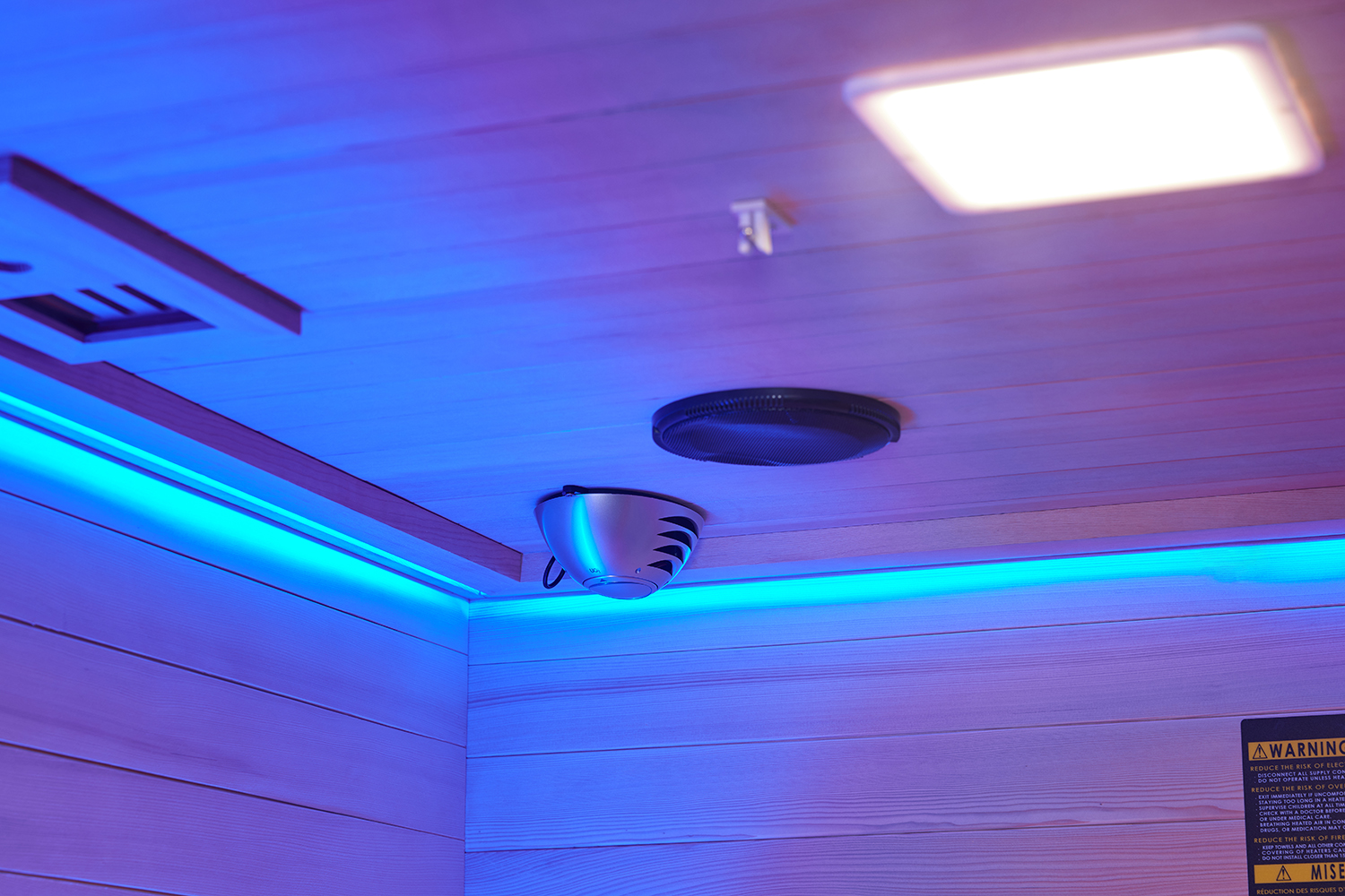 The compact, water-resistant speaker is perfect for enjoying high-fidelity music or ambient sounds in the sauna.