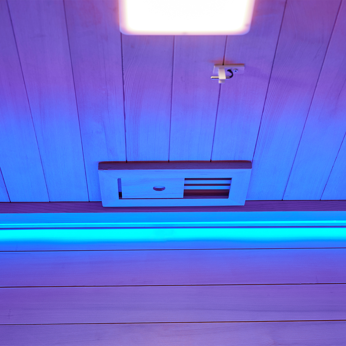 This sauna room is carefully made of high-quality wood, which is natural and environmentally friendly, high temperature resistant and exudes a light wood fragrance, adding a sense of tranquility and relaxation to your sauna experience. Equipped with a smart control panel, you can easily adjust the temperature and time, and accurately control the sauna experience. In addition, the built-in Bluetooth audio system allows you to play your favorite music while enjoying the sauna, creating a more pleasant and relaxing atmosphere.