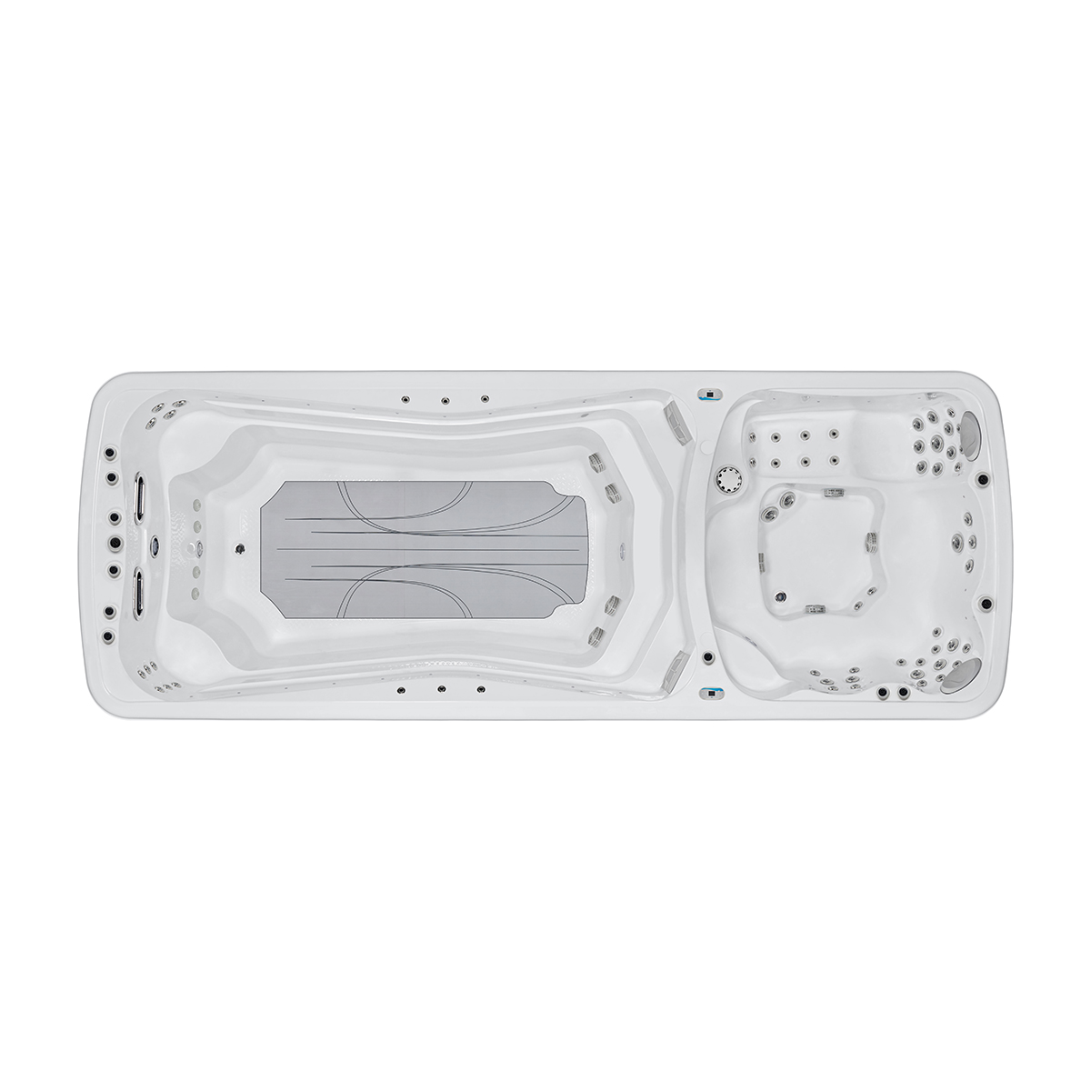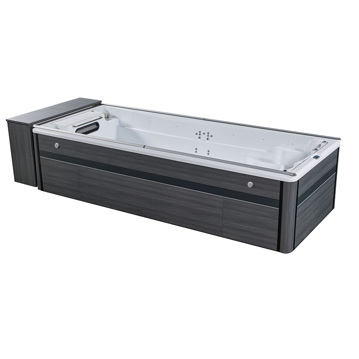 Our fitness swim spas are equipped with an advanced swimming training system that provides adjustable water flow intensity, which can be used to perform swimming training of different intensities according to personal needs, ensuring that each training can achieve the best results. The powerful water jet system simulates the environment of a real swimming pool, providing a stable and continuous water flow, allowing you to perform efficient water exercises in a comfortable environment.