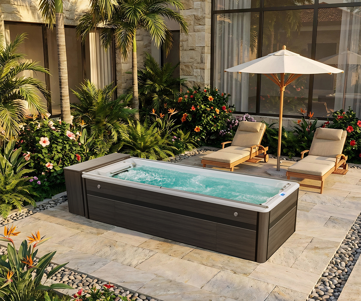 After training, the jets of the swim spa have a massage function, which can provide comprehensive relaxation for your muscles and relieve fatigue after exercise. Water flow massage not only helps to accelerate muscle recovery, but also promotes blood circulation and relieves soreness, allowing you to relax and relieve while training in the water.