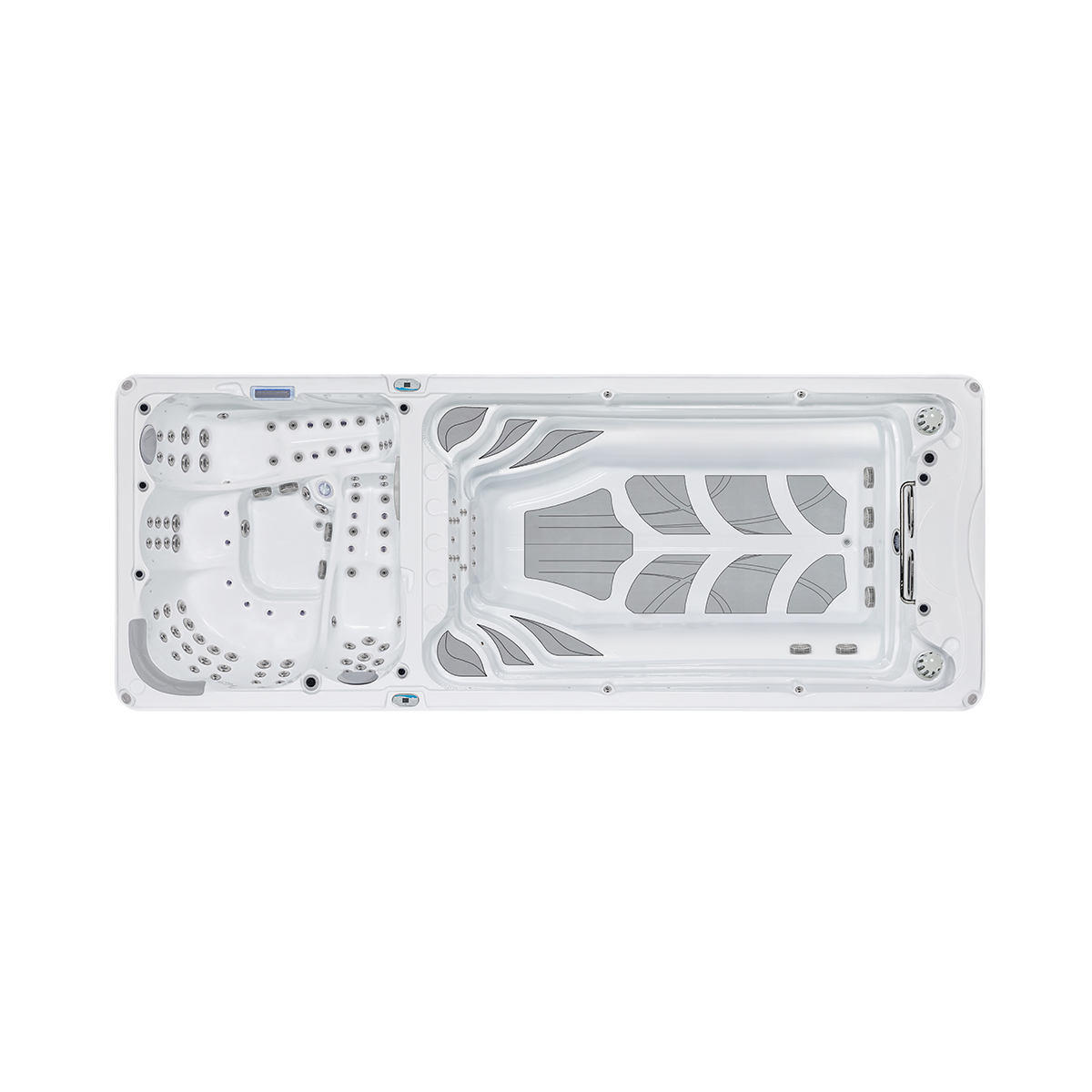 Our fitness swim spas are equipped with an advanced swimming training system that provides adjustable water flow intensity, which can be used to perform swimming training of different intensities according to personal needs, ensuring that each training can achieve the best results. The powerful water jet system simulates the environment of a real swimming pool, providing a stable and continuous water flow, allowing you to perform efficient water exercises in a comfortable environment.