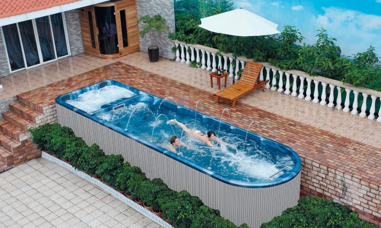 Wellness swim spa WS-S08M, combining an infinity pool with a powerful massage, brings you a double enjoyment of body and mind!