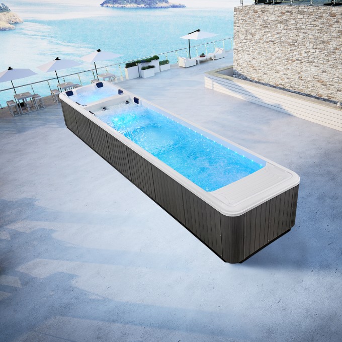 This swim spa tub uses an intelligent constant temperature system to keep the water temperature within the comfortable range you set, so you can swim in all seasons. The efficient filtration and sterilization circulation function ensures clear and hygienic water quality, effectively reduces maintenance work, and improves ease of use.
